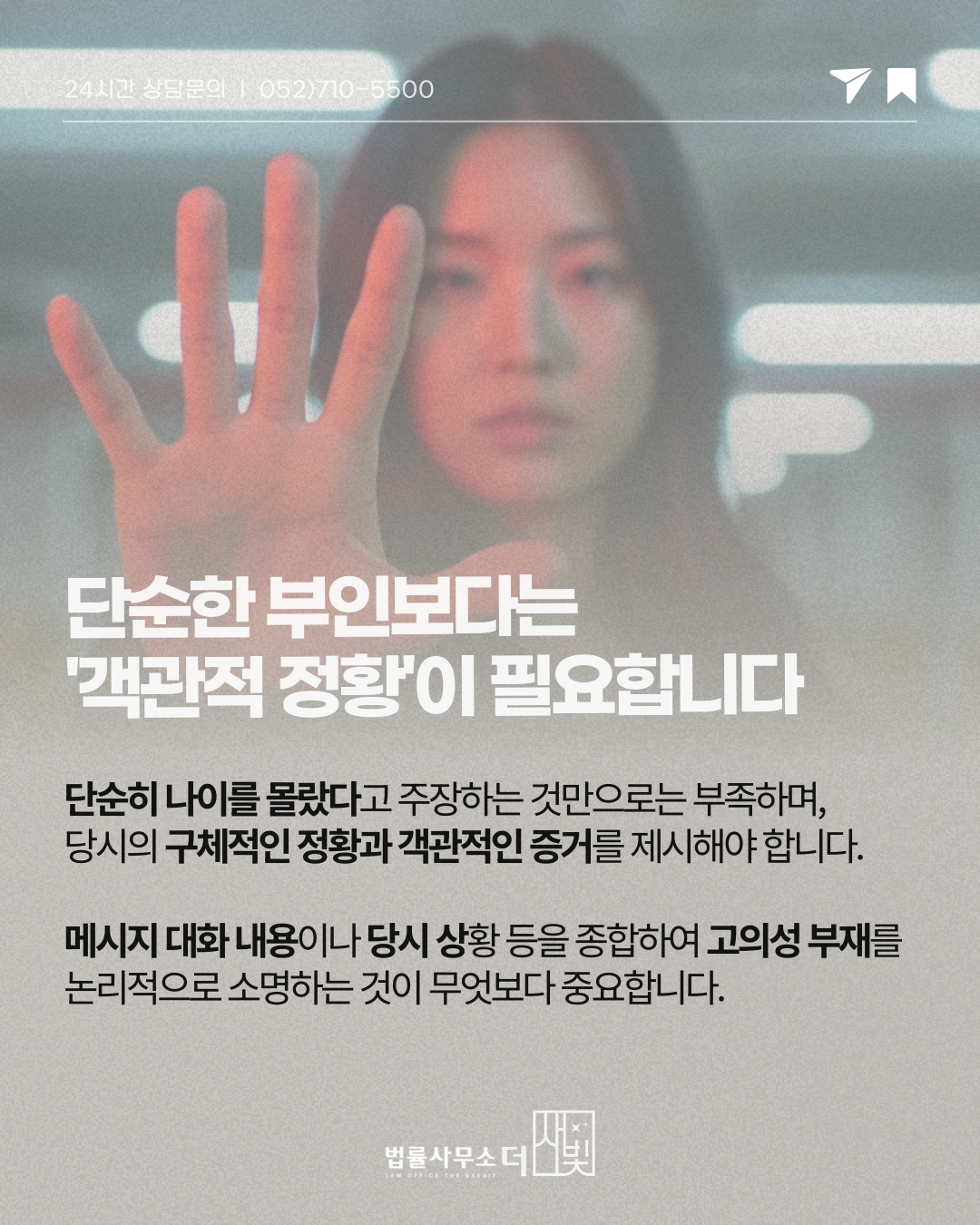 즉, 피의자 입장에서 상대방의 나이를 정말 몰랐다는 '고의성 부재'를 입증할 수 있는